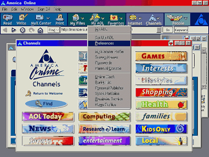 Thay vì web, phần lớn người dùng đều sử dụng một dịch vụ dial-up có trả phí như AOL. Bạn phải trả tiền cho mỗi phút bạn sử dụng nó.