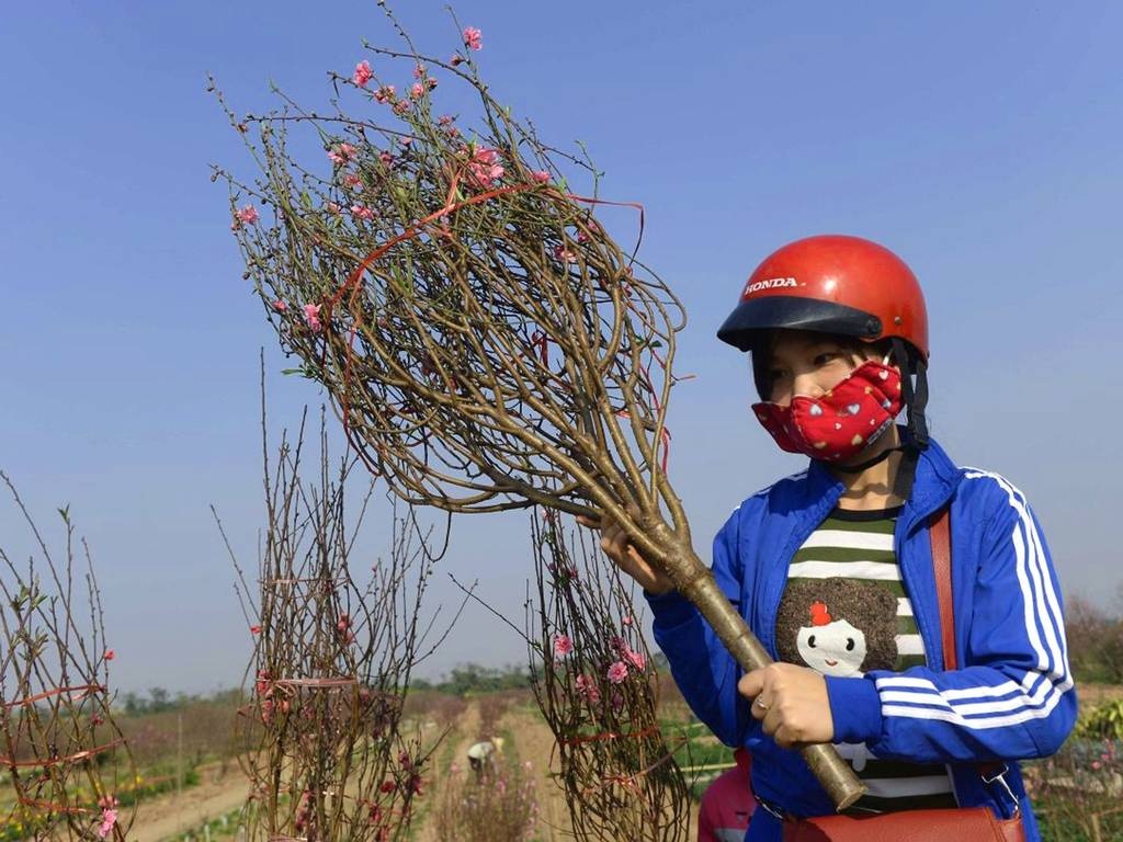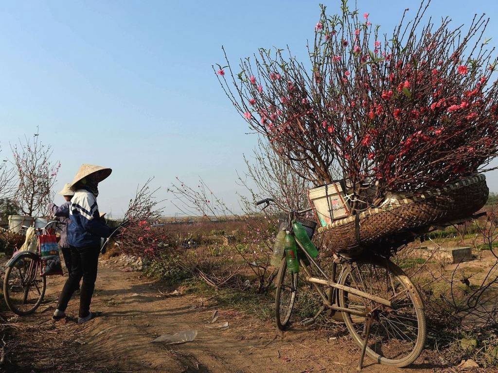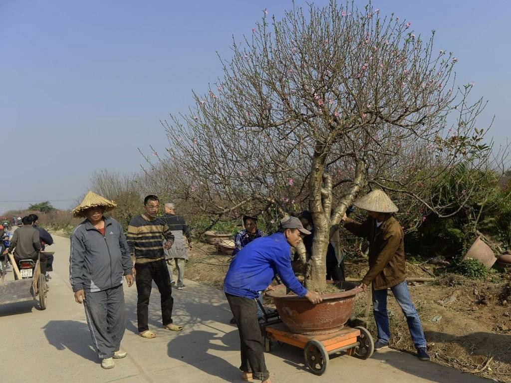 | Những người bán lẻ tới mua ngay tại vườn đào. |