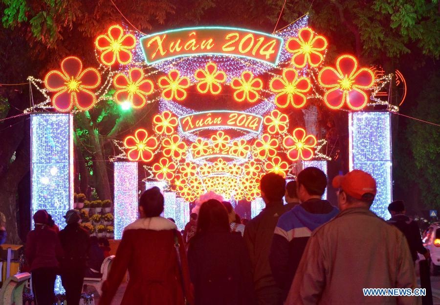| Ánh đèn rực rỡ trên đường phố Hà Nội. |