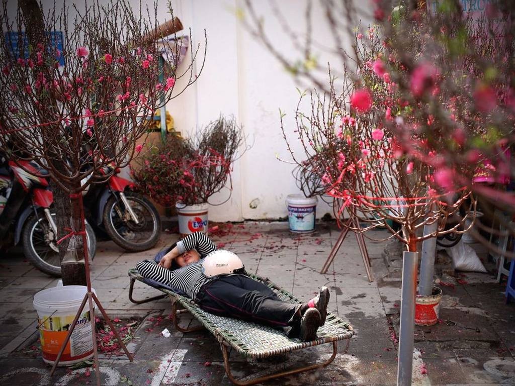 | Những người phụ nữ bán đào trên phố thủ đô. |