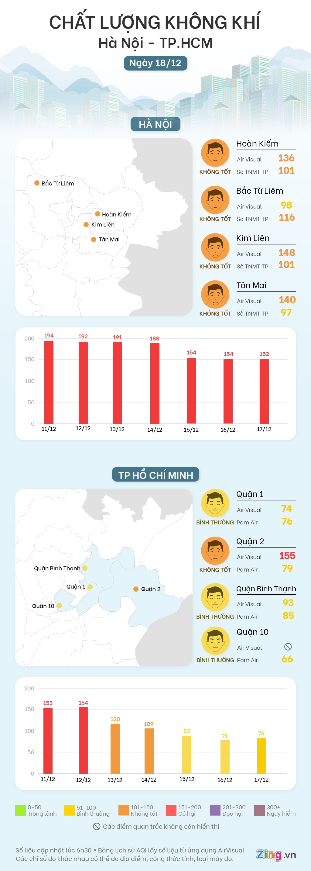 Không khí Hà Nội cải thiện, Thảo Điền ô nhiễm nhất TP.HCM sáng nay