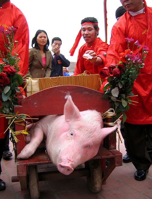 | Hình ảnh tại lễ hội chém lợn làng Ném Thượng, huyện Tiên Du, Bắc Ninh. |