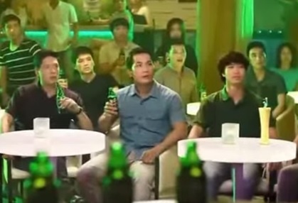 | Cựu tuyển thủ Phan Thanh Bình từng đóng clip quảng cáo cho một hãng đồ uống trong chiến dịch cổ vũ World Cup 2010. |
