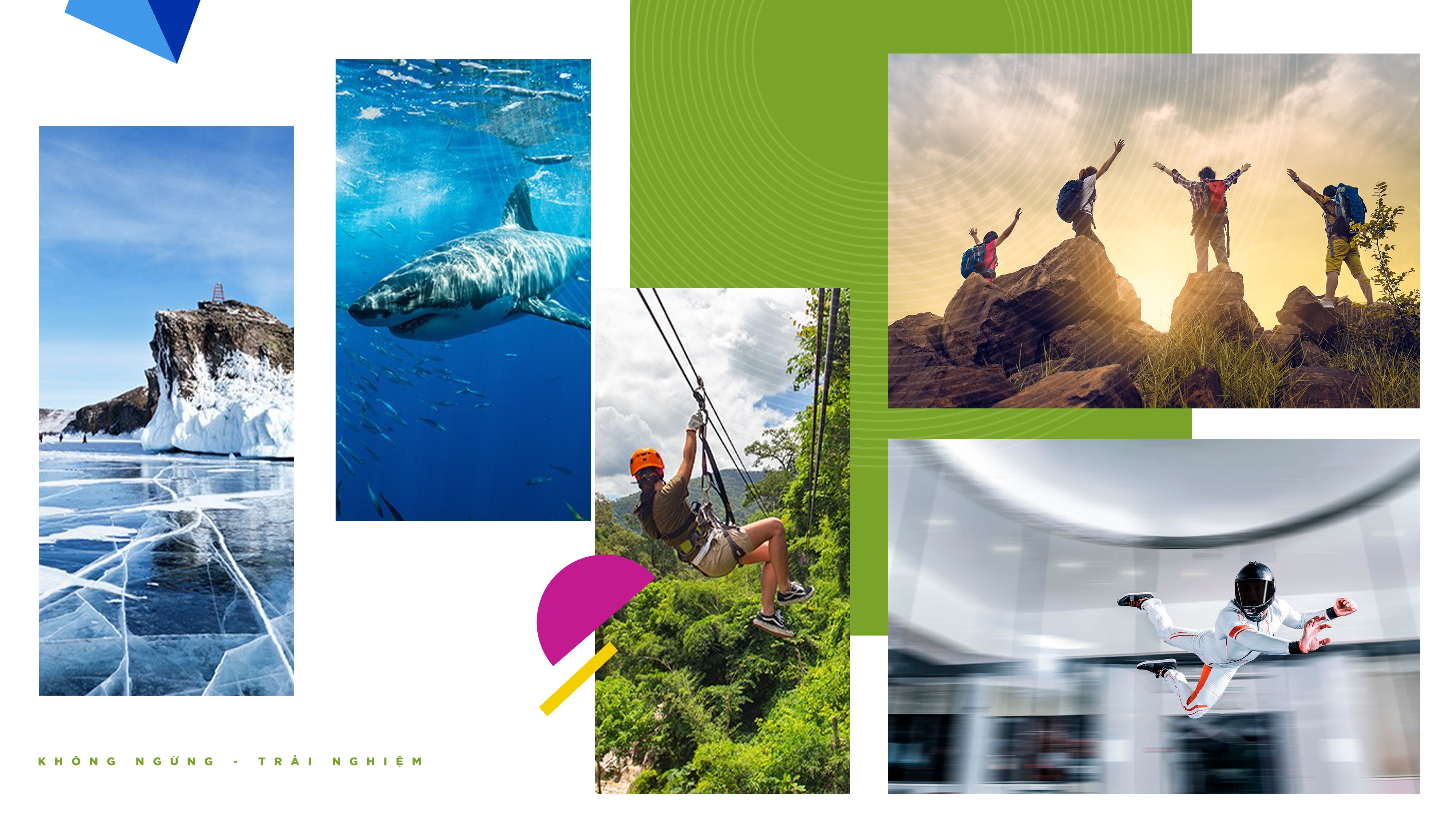 Đó có thể là lần đầu tiên người trẻ ngắm bình minh bên miệng núi lửa Bali (Indonesia), trượt zipline giữa đại ngàn bao la Chiang Mai (Thái Lan), đối mặt với cá mập ở cự ly gần tại Australia, câu cá bên hồ băng và chiêm ngưỡng cực quang huyền ảo (Nga) hay bay không trọng lực ở Singapore. Đây là cơ hội đặc biệt dành cho những người trẻ yêu thích trải nghiệm, thử thách chính mình, khám phá giới hạn mới của bản thân và thế giới rộng lớn xung quanh.