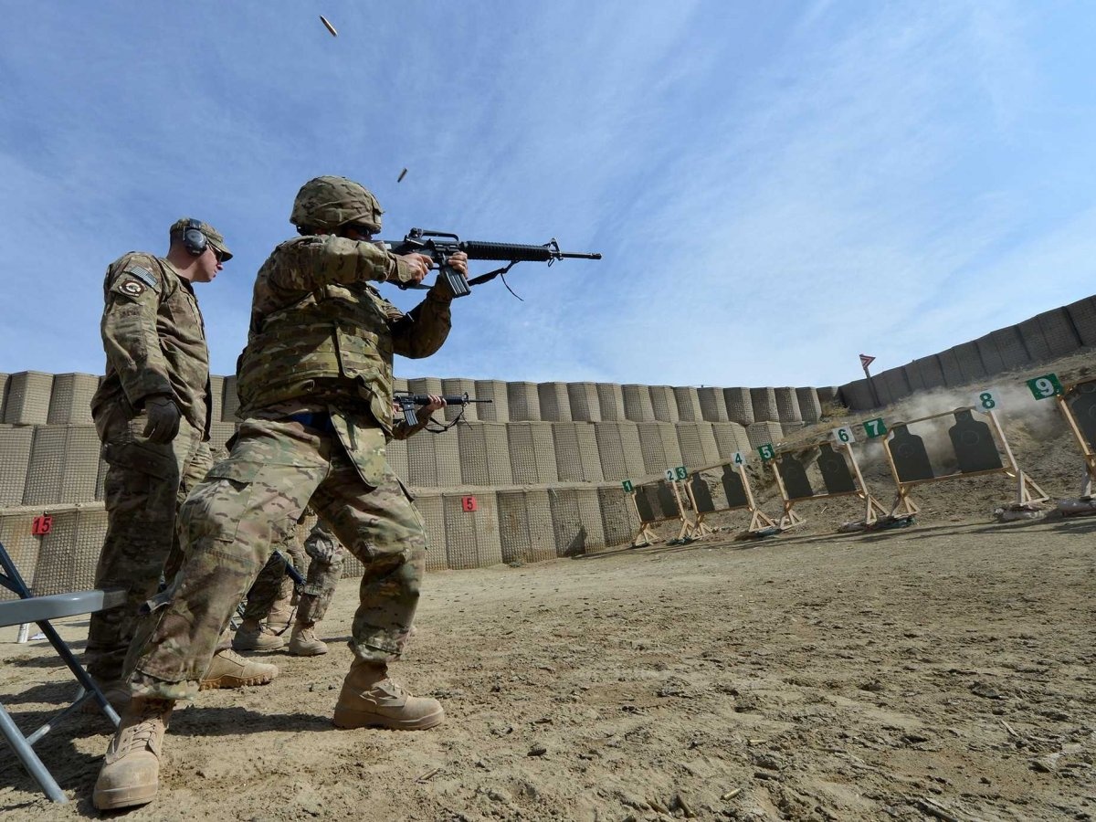 | Không riêng gì các lực lượng khác trong quân đội Mỹ, binh sĩ trong không quân cũng phải sử dụng những vũ khí lớn như súng máy. Ảnh: Không quân Mỹ |