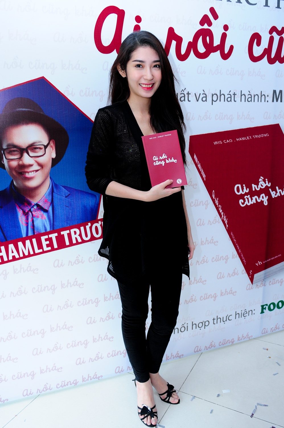 | Chiều 21/2, nữ ca sĩ Lạnh diện cây đen đến mừng Hamlet Trương và Iris Cao ra mắt sách Ai rồi cùng khác tại TP.HCM. Do bận việc riêng nên chàng Bắp không tháp tùng Khổng Tú Quỳnh đến sự kiện. |