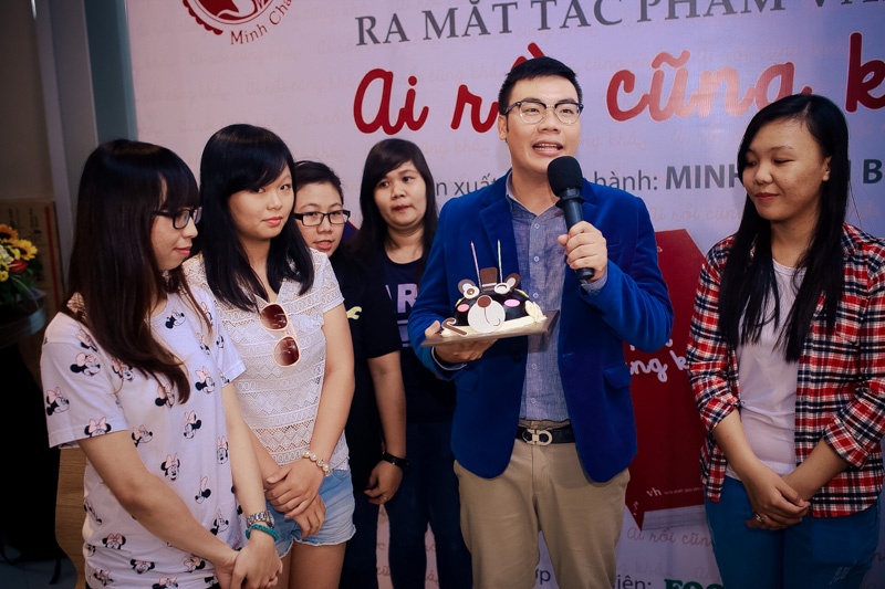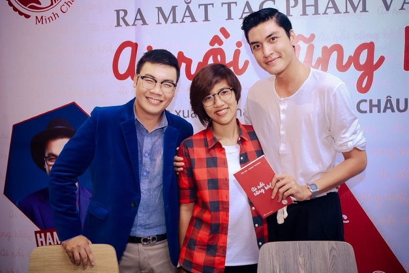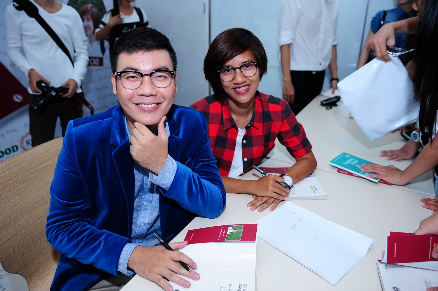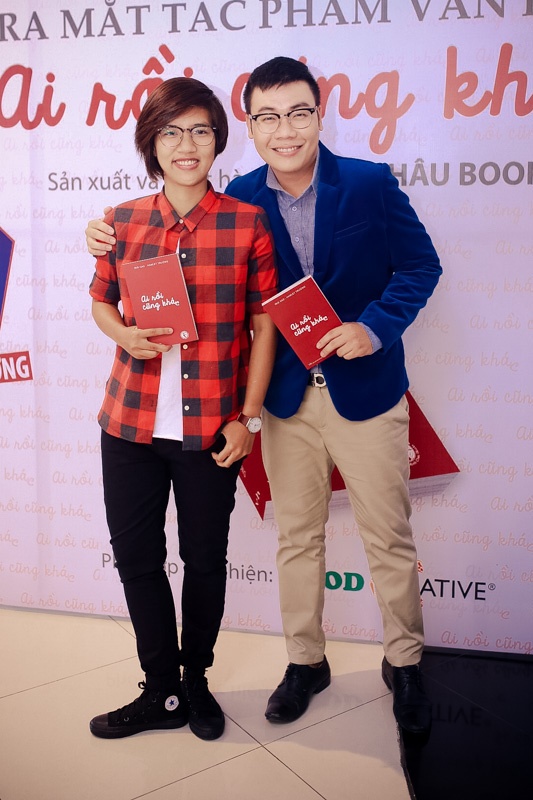 | Quốc Thiên cũng đến chúc mừng bộ đôi tác giả. |