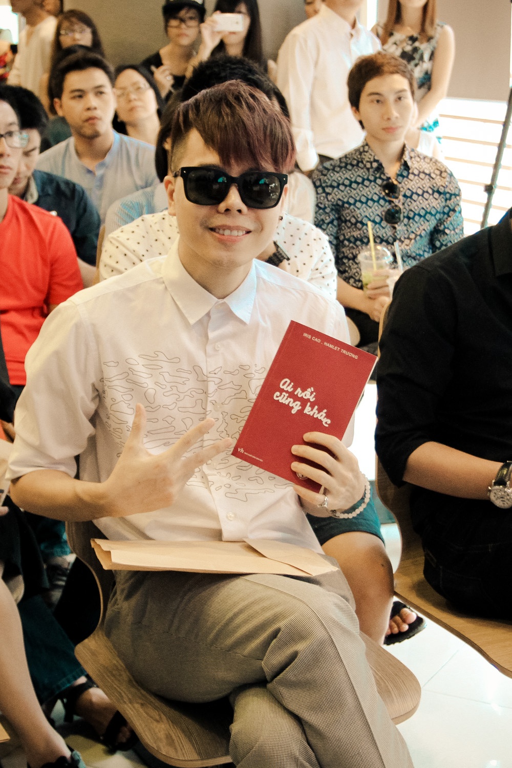 | Người mẫu Quang Đại cũng đến mừng Hamlet Trương ra sách mới. Chia sẻ về cuốn sách mới, tác giả nói: "Không giống với những tác phẩm trước, Ai rồi cũng khác không còn đề cập tới tình yêu, mà sẽ kể những câu chuyện về tình bạn, cũng có đôi chút liên hệ với chính bản thân mình. Có những người bạn đột nhiên không còn cùng đi chung nữa, ban đầu chúng ta sẽ rất buồn, nhưng sau đó cũng phải học cách chấp nhận, bởi ai rồi cũng sẽ lớn, sẽ đổi thay. Ngay chính bản thân chúng ta cũng đổi thay, sao lại bắt người khác đứng yên?". |