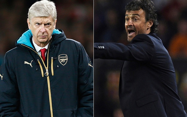 Bên đường pitch, Wenger và Luis Enrique trông như hai vị giám đốc tương phản thế hệ đang cố gắng sắp xếp cuộc gặp cho BLĐ công ty.