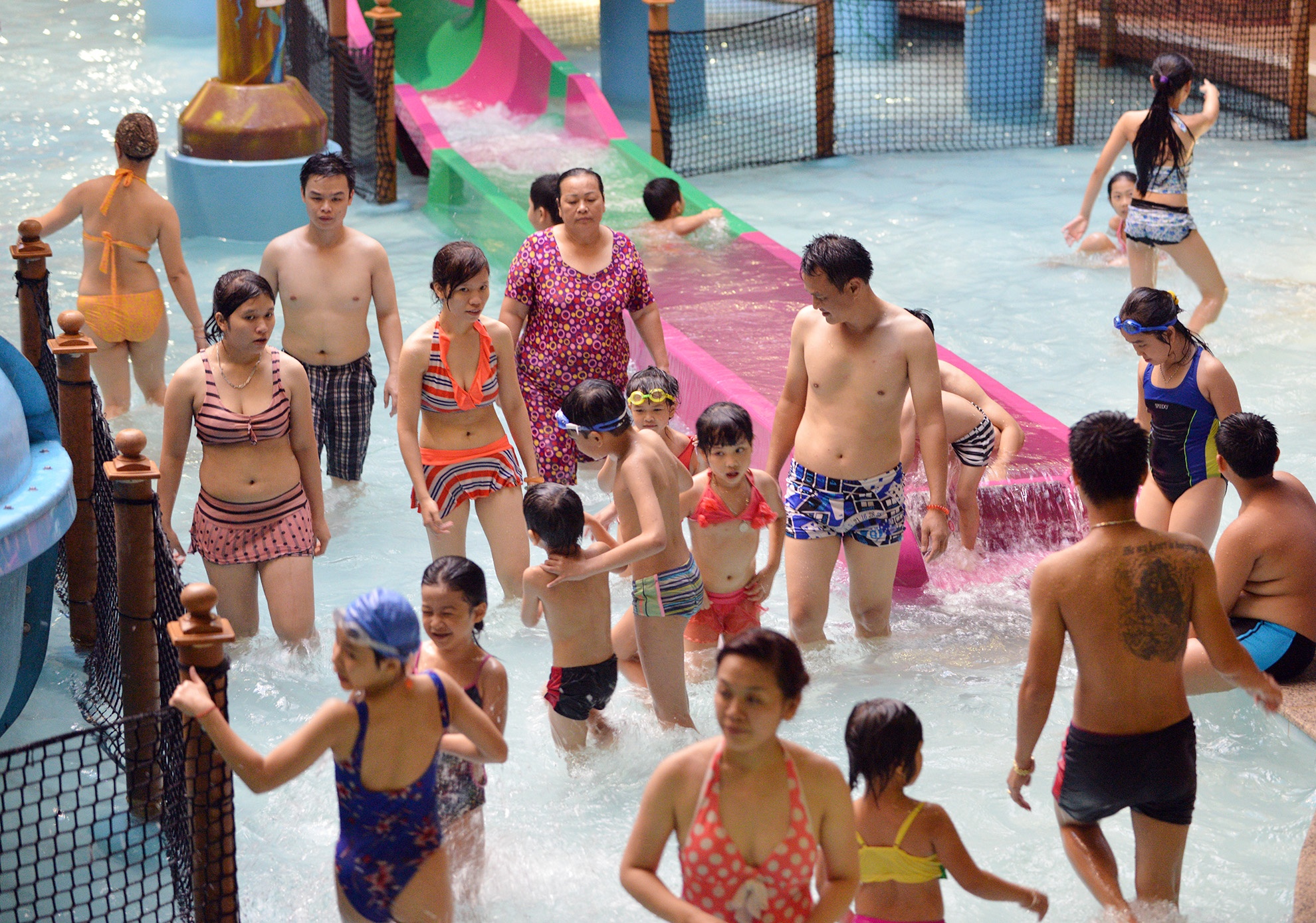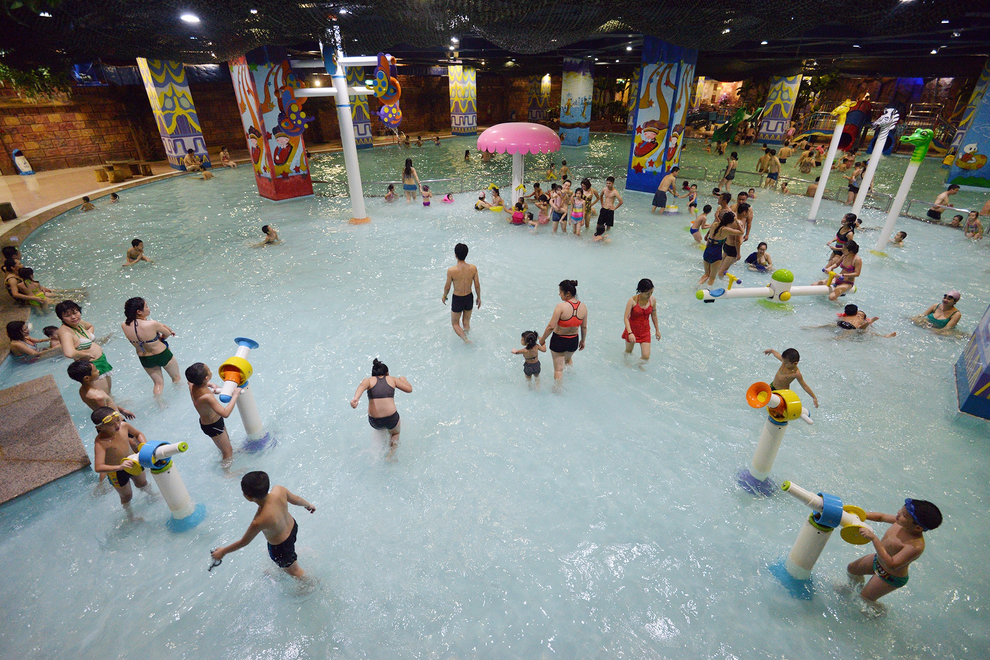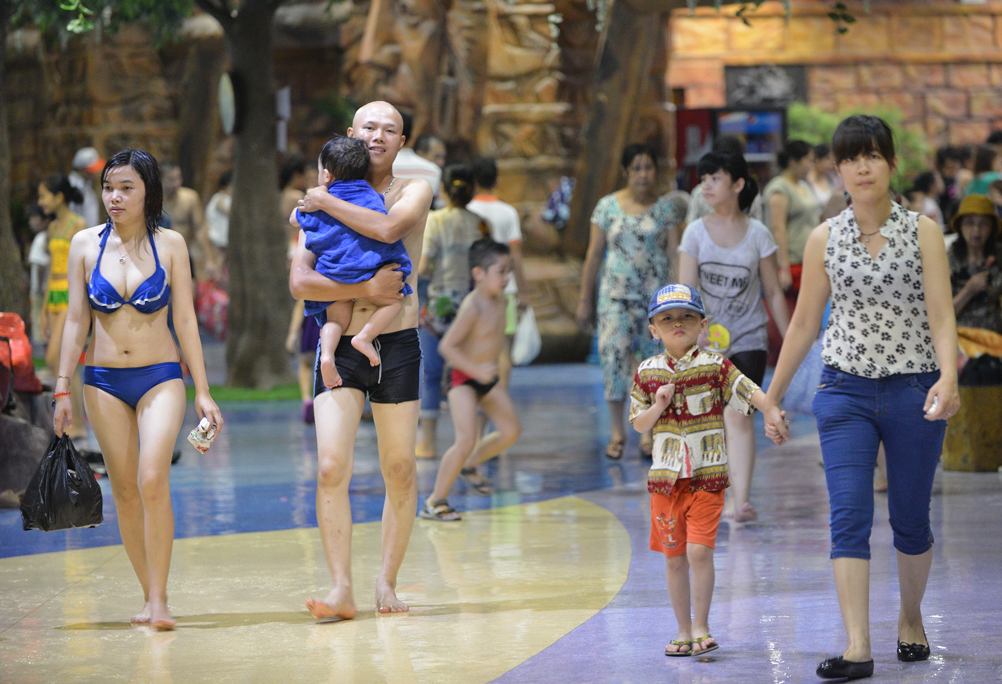 | Khu vực bể bơi nước cạn dành cho thiếu nhi đông hơn ngày thường. |