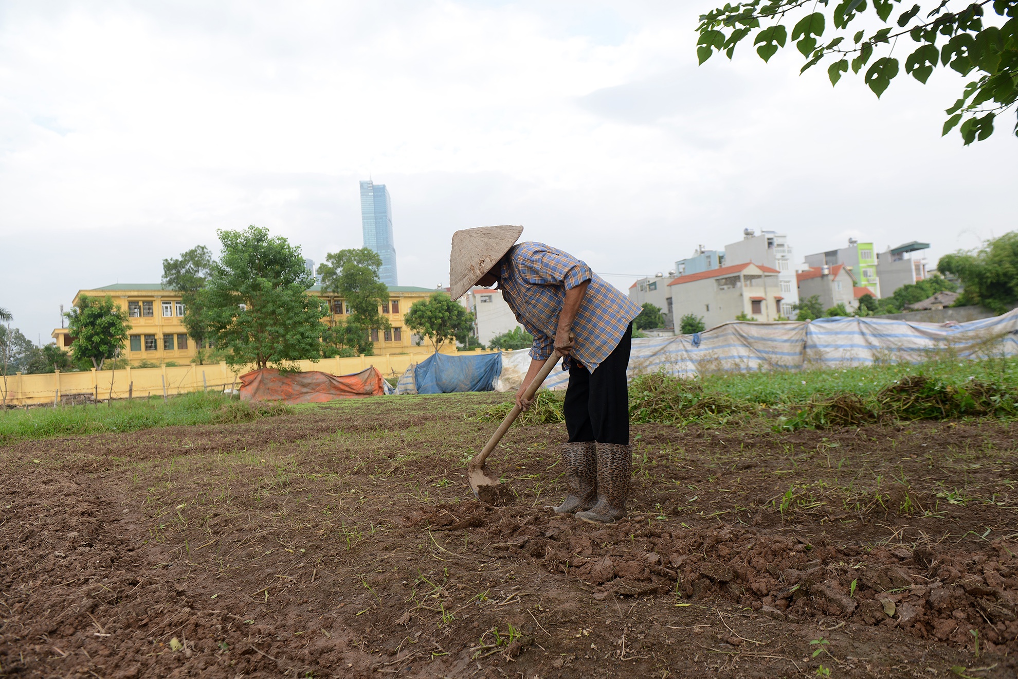 Bà Nguyễn Thị Vinh, người làng Mễ Trì Thượng đã mượn một khoảnh đất để tăng gia. Trên diện tích mấy trăm m2, bà trồng đủ loại hoa màu, rau, củ bán cho dân sinh sống quanh khu vực. Hai năm nay, trung bình mỗi tháng, bà Vinh có thu nhập khoảng 5 triệu đồng từ những sào ruộng không phải đóng thuế này. |