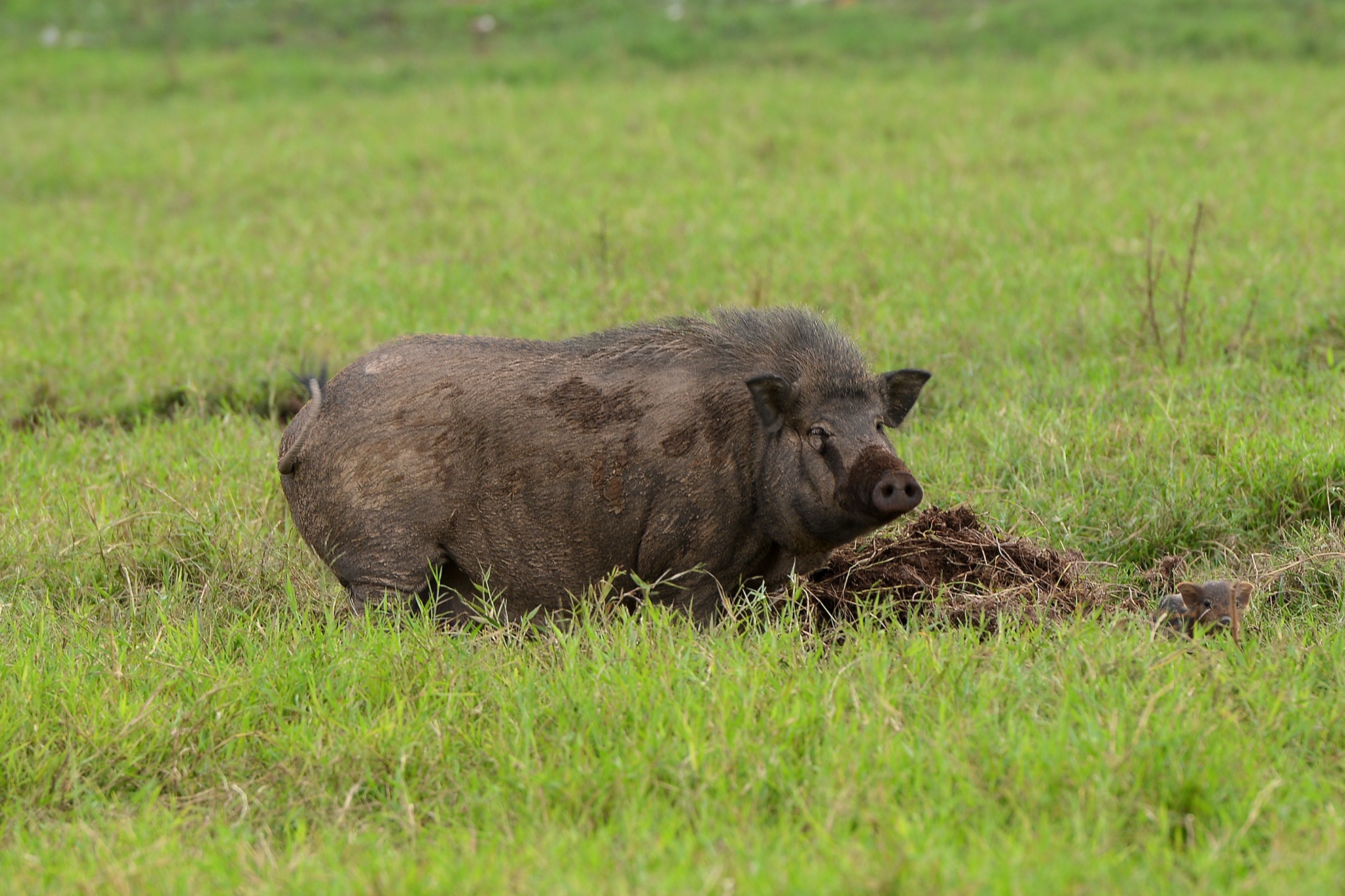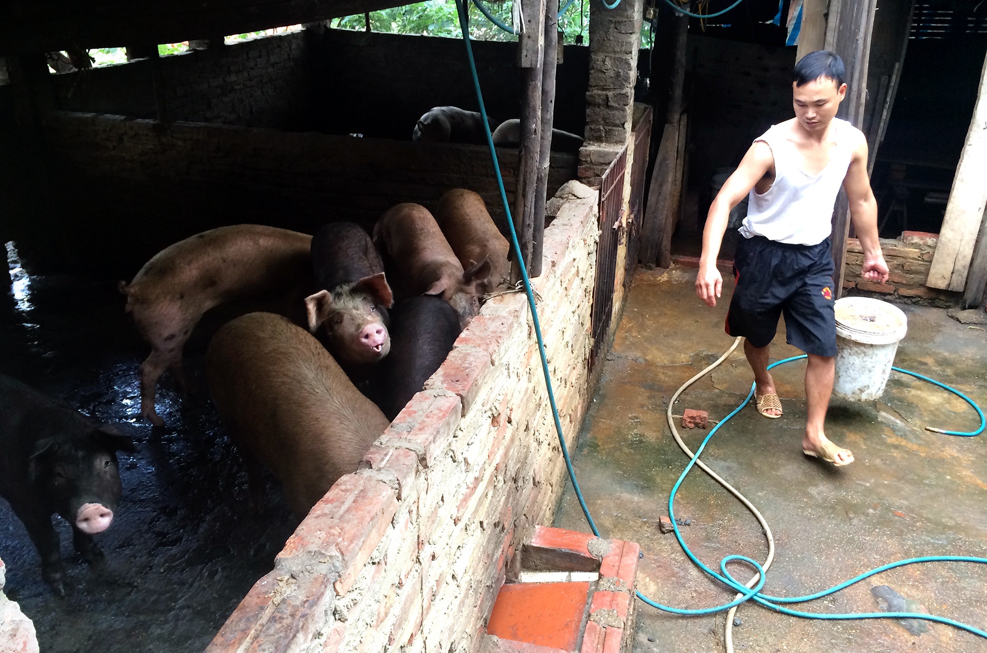 Ngoài chuồng lợn nuôi lấy thịt xuất bán ở trên đồi, anh Hiếu cũng nuôi thả đồng vài chú lợn để Tết liên hoan toàn gia. |