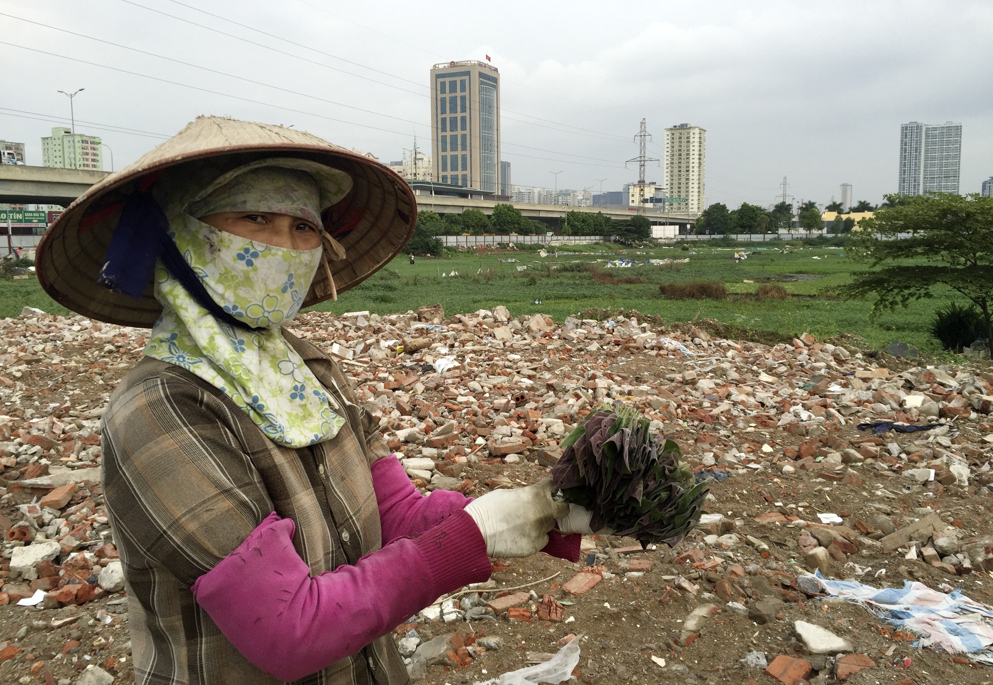 Khu đất bị bao kín, không trồng được lúa nên nhiều dân làng mượn đất chủ ruộng trồng rau, kiếm thêm thu nhập. |
