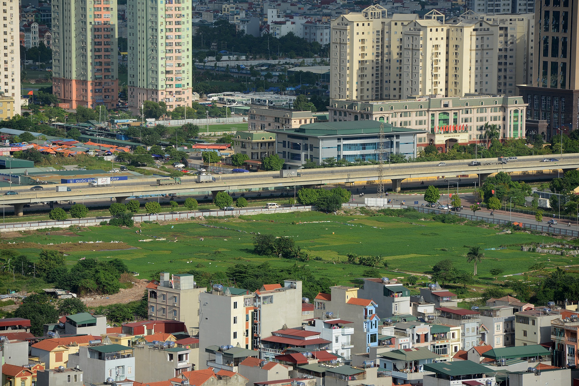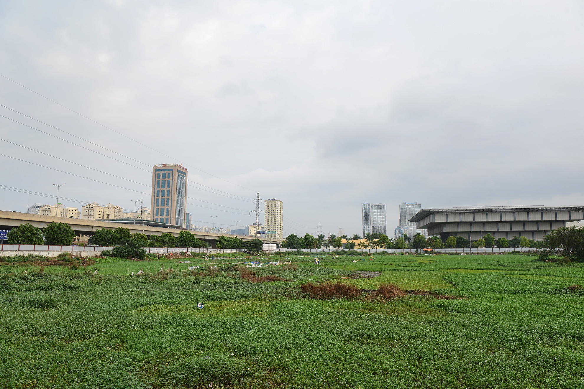 4 năm trôi qua, hình ảnh thực tế không lung linh như bản vẽ phối cảnh 3D. Mặc dù đã hoàn tất công tác đền bù đất cho dân từ lâu, song cánh đồng trồng rau muống, hoa màu hiện tại cho thấy tiến độ thực hiện dự án. |