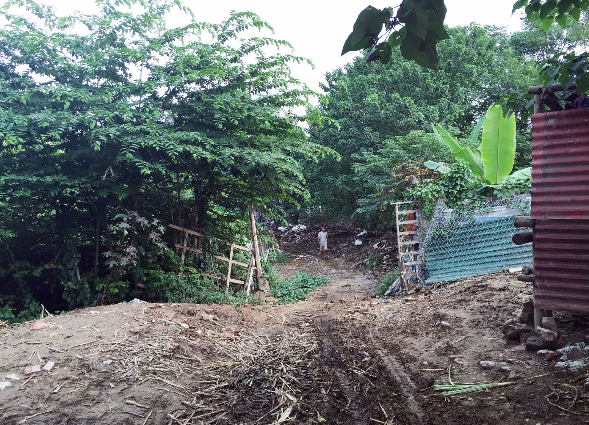 Dự án nằm sát mặt đường Mễ Trì nhưng để vào được khu đất này, chỉ có cách men theo con đường đất nhỏ băng qua quả đồi rác giữa làng Mễ Trì Thượng (quận Nam Từ Liêm, Hà Nội). |
