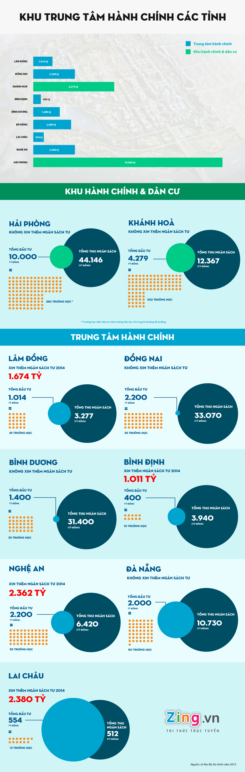 Nhiều tỉnh, thành có dự án khu hành chính tập trung có tổng đầu tư đến hàng chục nghìn tỷ. Nếu tính chi phí xây 1 trường học là 40 tỷ thì số vốn này có thể làm được hơn 500 trường.