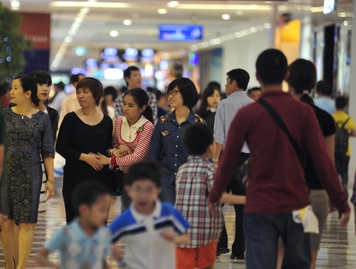 Theo ghi nhận của Zing.vn, lượng khách đổ về các trung tâm thương mại đẹp và xa xỉ ở Hà Nội giảm khá đáng kể so với những ngày cuối tuần do các gia đình đi nghỉ xa hoặc về quê.