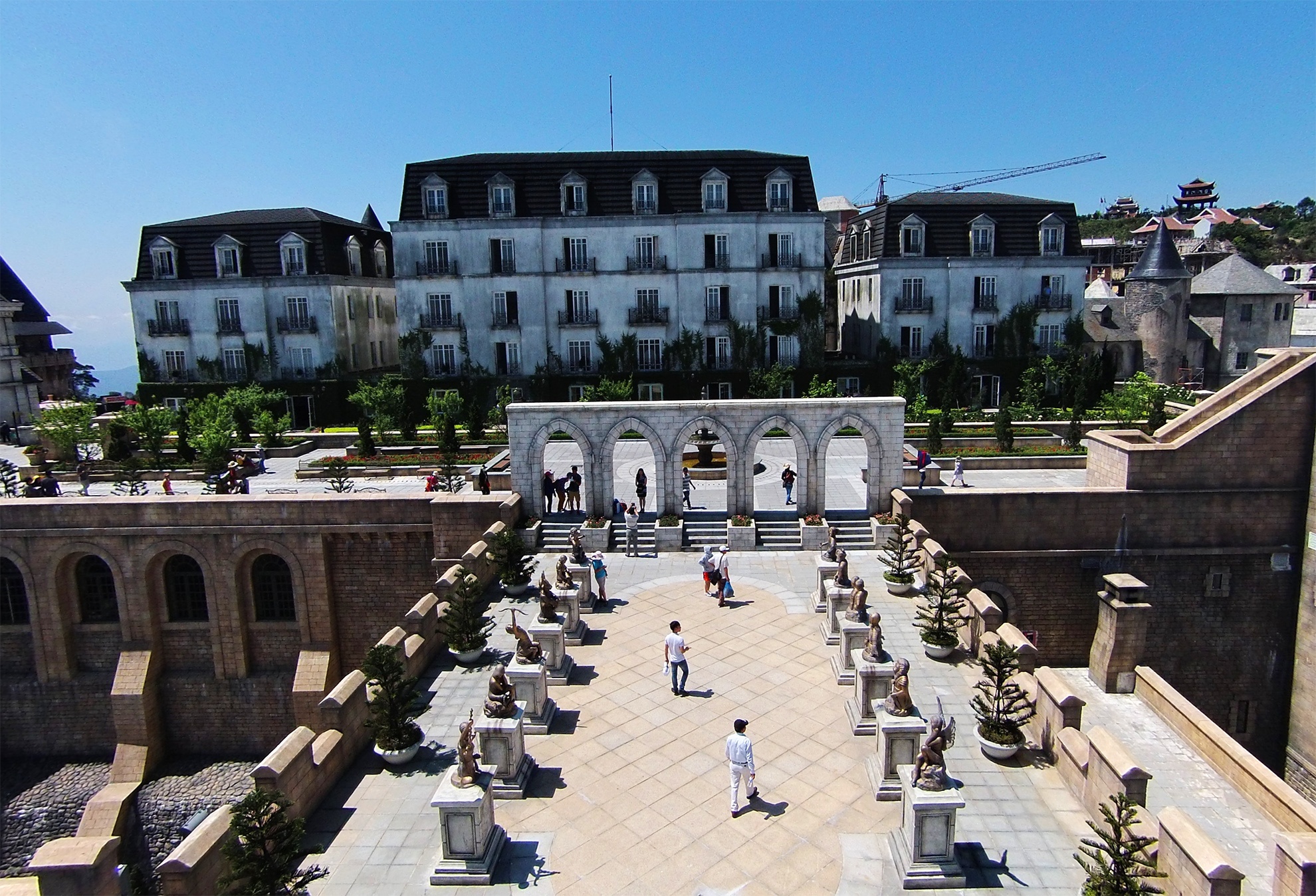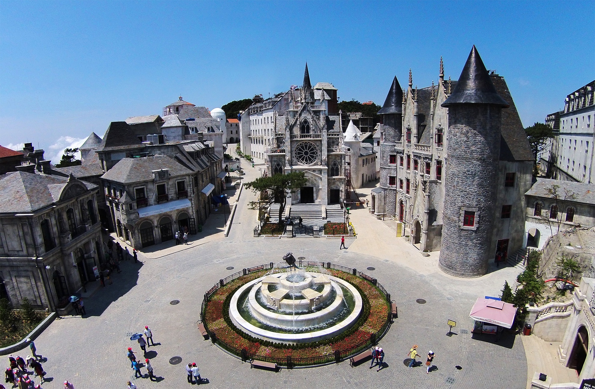 | Khu vực trung tâm của đỉnh Bà Nà đã được mở rộng và xây mới thành khu làng Pháp với tổ các công trình mô phỏng bảy địa danh nổi tiếng ở Pháp. |