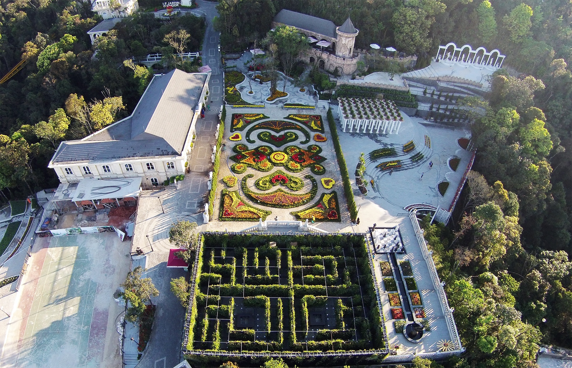Mỗi khu vườn với nhiều chủng loại hoa trên thế giới được thiết kế bài trí mang ý nghĩa khác nhau, như vườn Uyên Ương, vườn Bí Ẩn, vườn Thần Thoại, vườn Địa Đàng, vườn Suối Mơ...