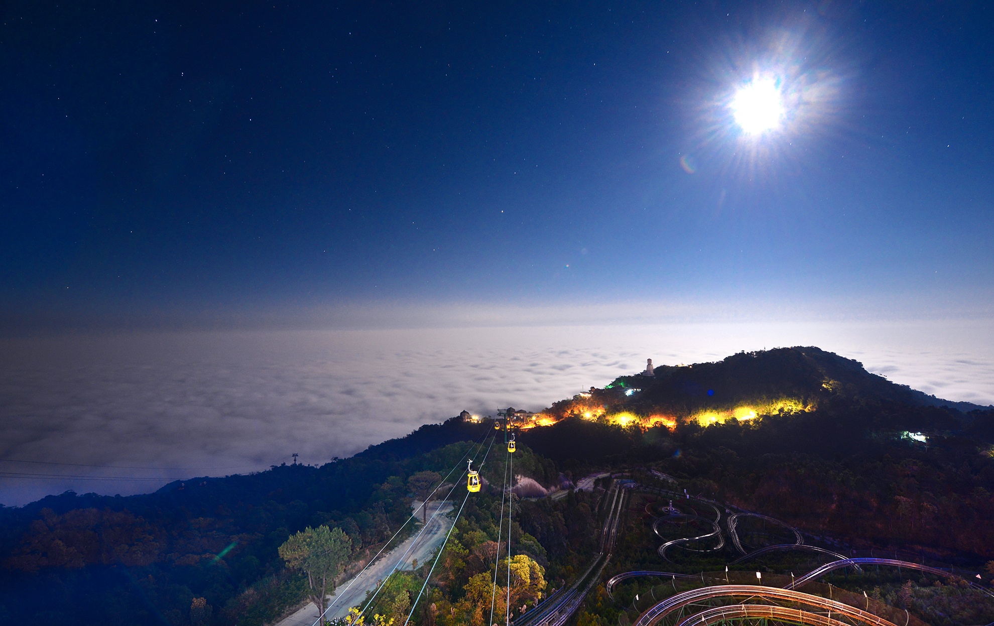 Đêm xuống, du khách không chỉ có thể bồng bềnh giữa biển mây mà còn có thể ngắm sao trời sáng như ban ngày.