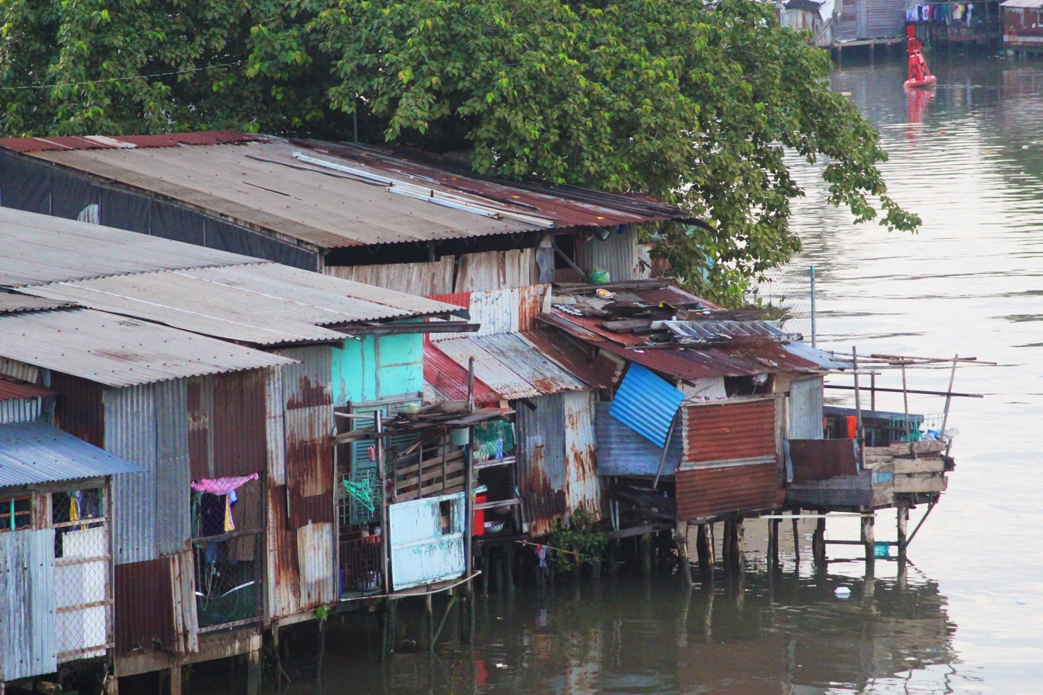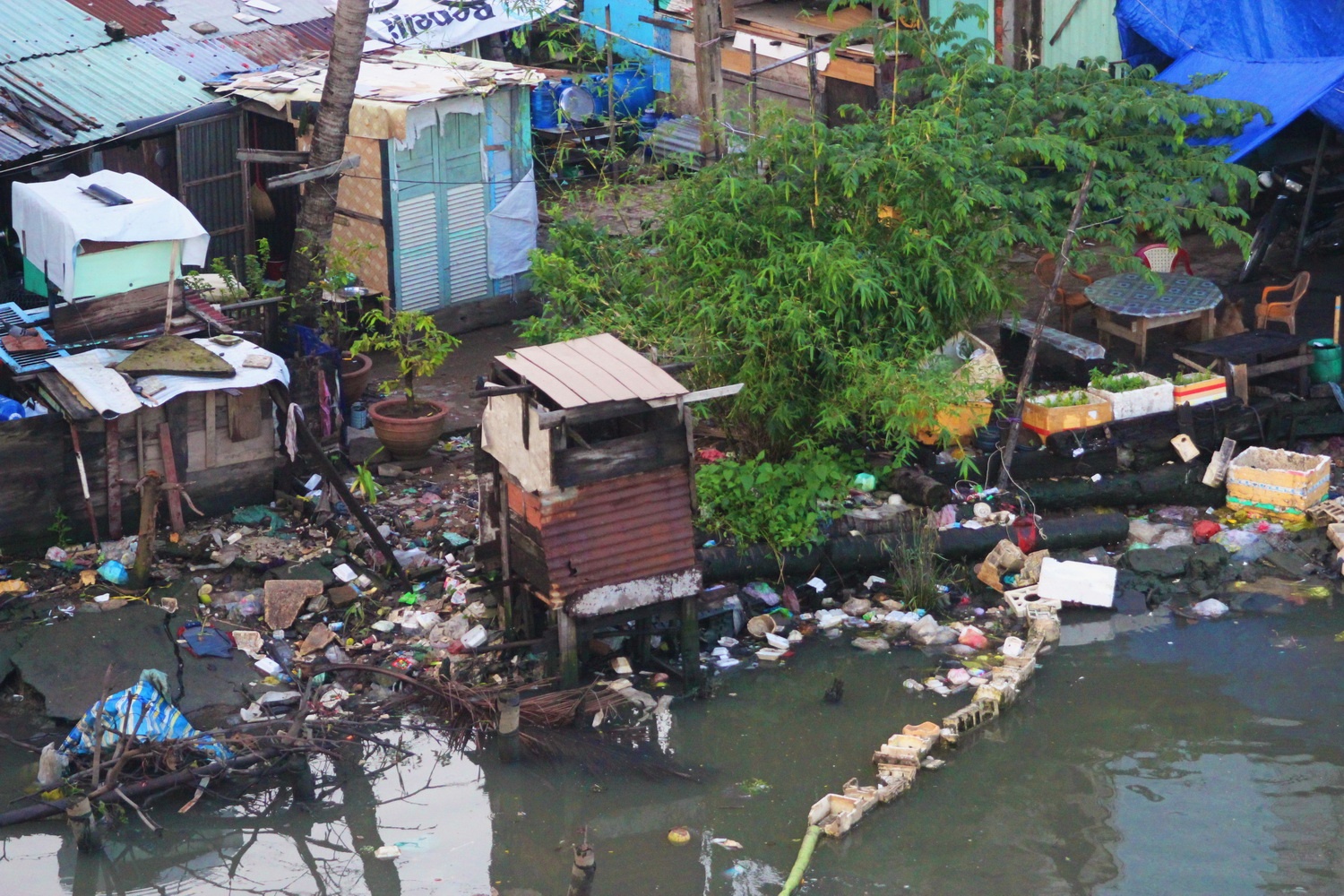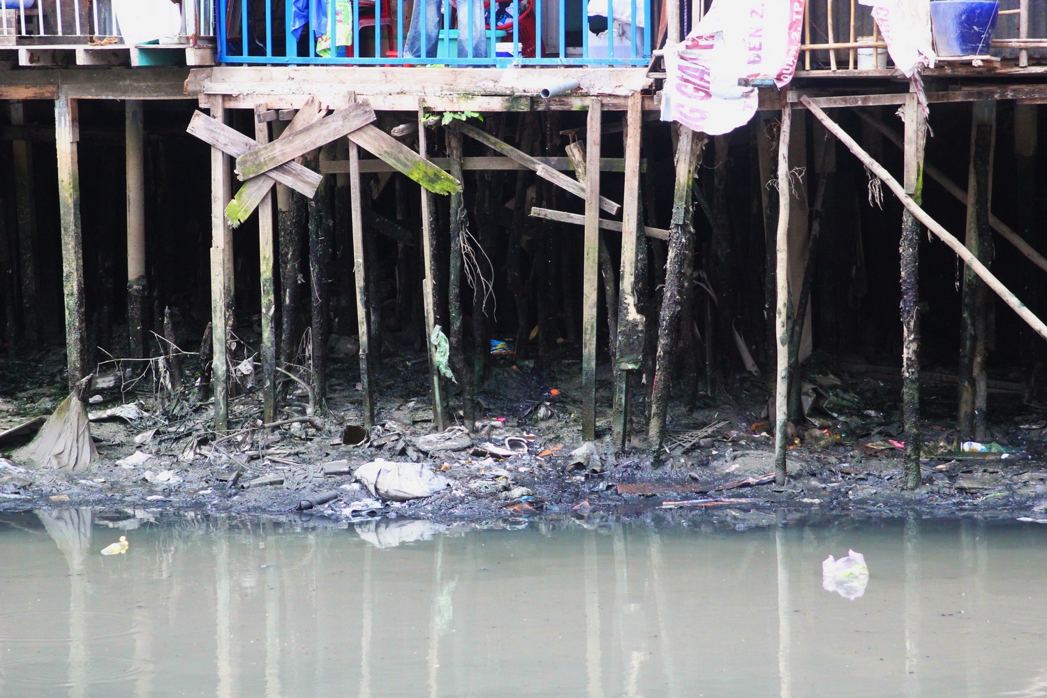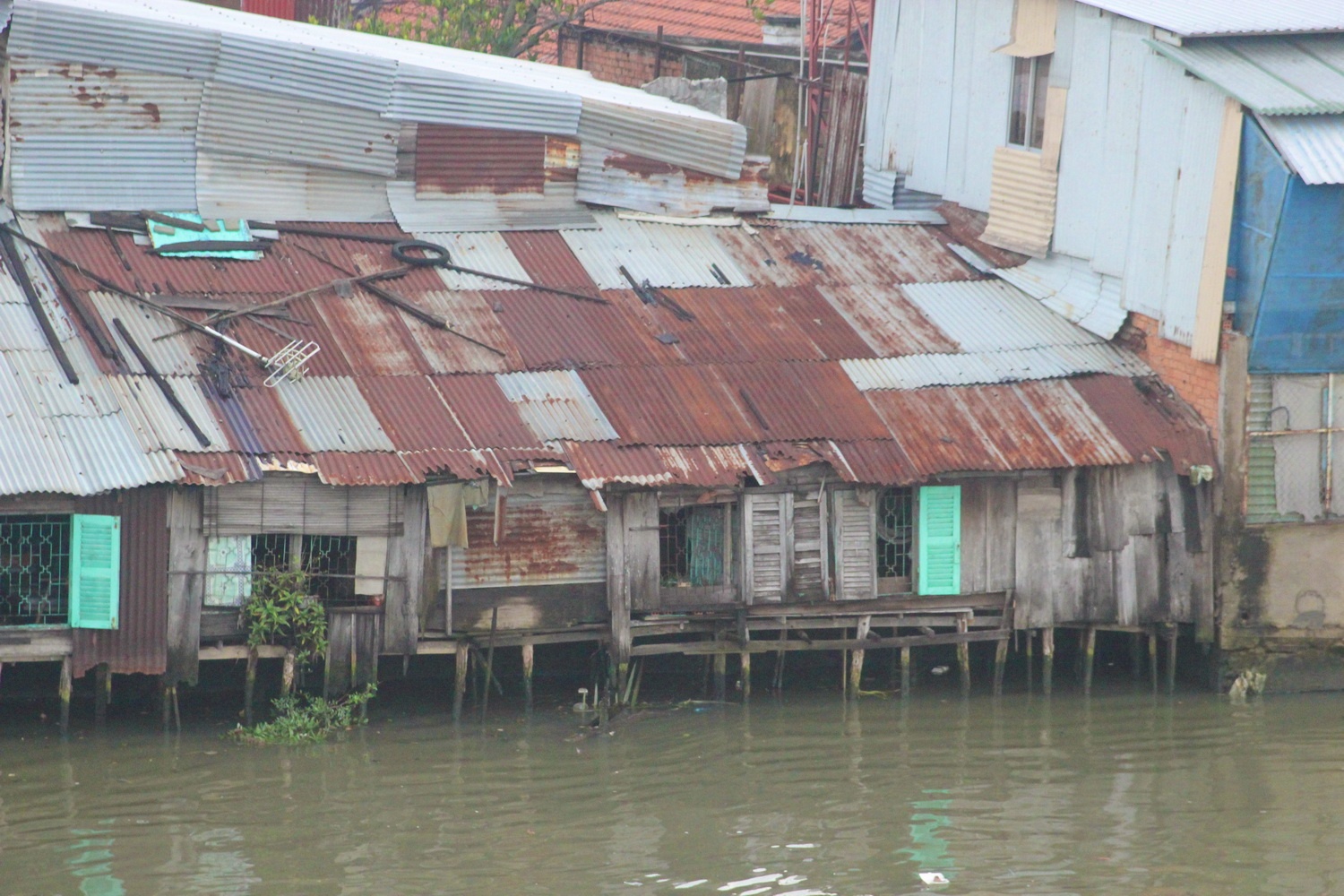 Các ngôi nhà lụp xụp, chật hẹp kéo dài hàng chục km, vươn ra dọc 2 bên các con kênh.
