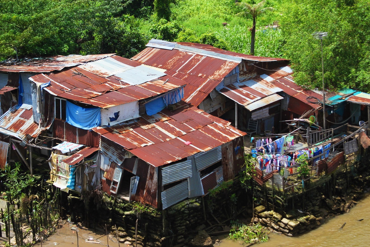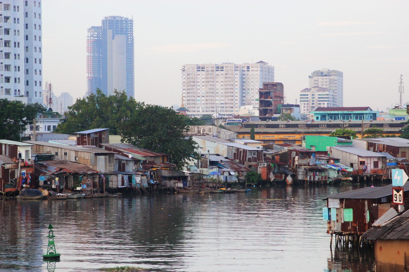 | Nhiều khu nhà tồi tàn nằm cạnh những tòa cao ốc, khu chung cư sang trọng, hiện đại. |
