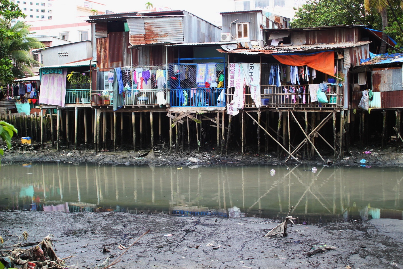 Nằm bên cạnh những cao ốc sang trọng, hiện đại là các khu nhà "ổ chuột" lụp xụp, nhếch nhác.