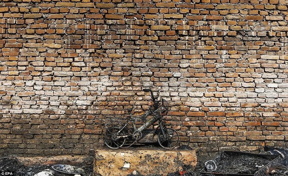 | Chiếc xe đạp cháy rụi. Ảnh: EPA |