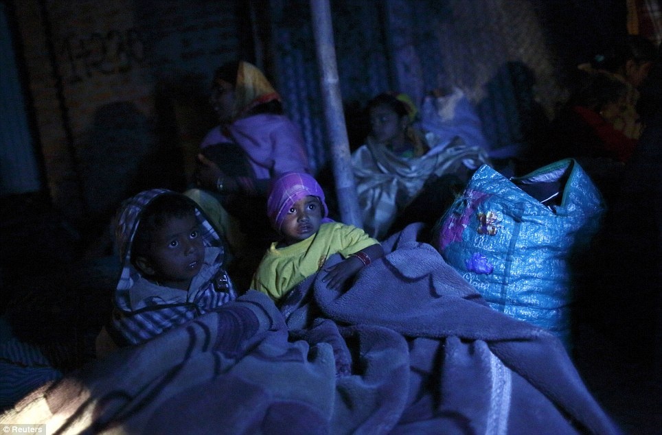 | Những đứa trẻ phải sống cảnh “màn trời chiếu đất” sau vụ hỏa hoạn. Ảnh: Reuters |