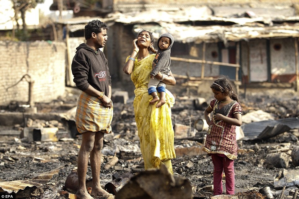 | Những người dân sống tại khu ổ chuột - đa số là dân nhập cư tới từ Ấn Độ - mất trắng sau vụ hỏa hoạn. Ảnh: EPA. |