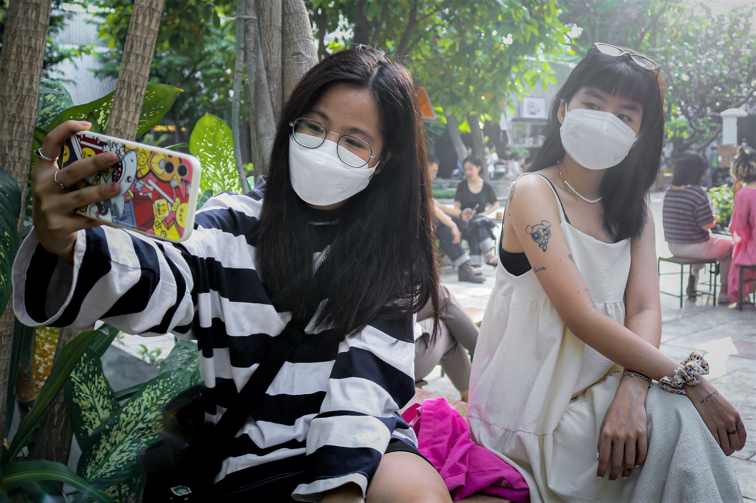 Sau khi dùng bữa tại đây, nhóm bạn của Minh Phát và Kim Chi (cùng sinh năm 2004, ngụ ở quận Tân Phú) tìm view đẹp để chụp ảnh cho nhau.