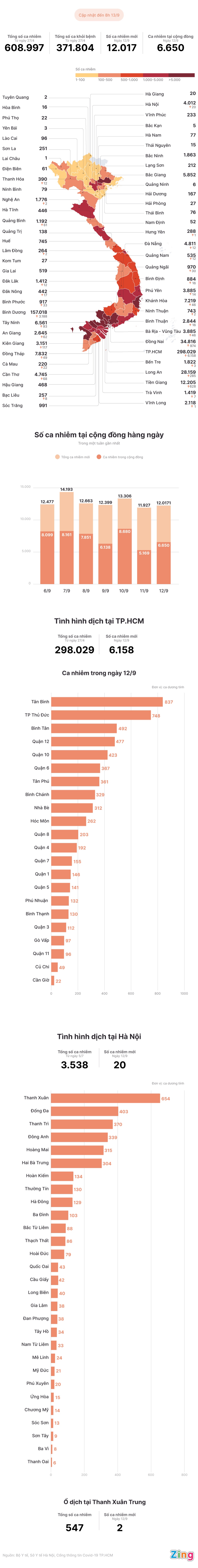 Dịch Covid-19 tại TP.HCM vẫn diễn biến phức tạp với số lượng lớn ca mắc mới mỗi ngày. Trong ngày 12/9, quận Tân Bình ghi nhận nhiều người nhiễm nCoV nhất.