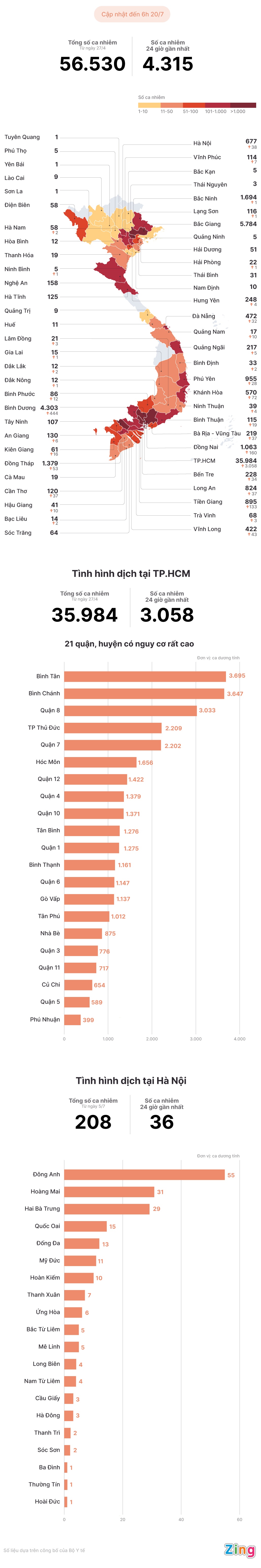 Tính từ 27/4 đến nay, Việt Nam có 56.530 ca mắc Covid-19. Đặc biệt, Hà Nội đã phát hiện 208 bệnh nhân sau hơn 2 tuần bùng phát trở lại.