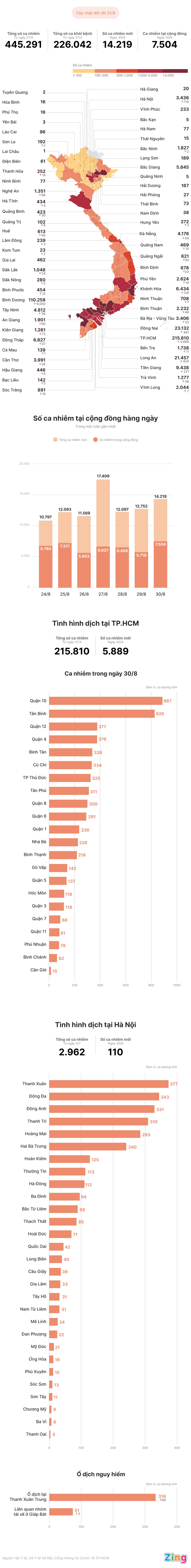 Dịch Covid-19 ở TP.HCM và Hà Nội vẫn diễn biến phức tạp, nhiều khu vực có thêm người dương tính với nCoV.