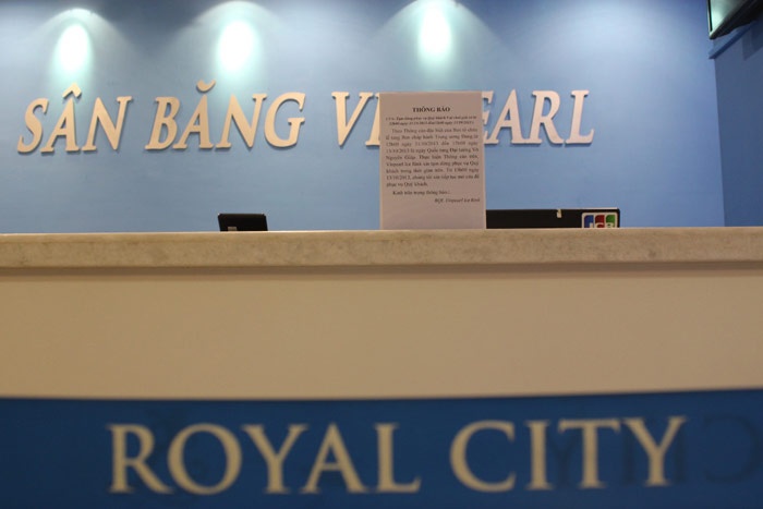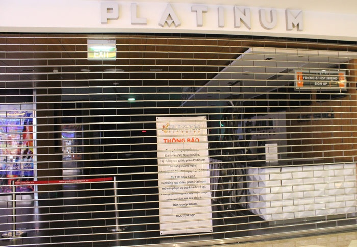 | Lưới bảo vệ được kéo xuống tại Platinum Cinema trong Royal City. |