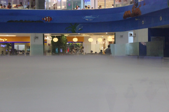 | Thay vì cảnh đông đúc thường thấy, trên sân băng hiện chỉ có một nhân viên đang làm nhiệm vụ bảo dưỡng. |