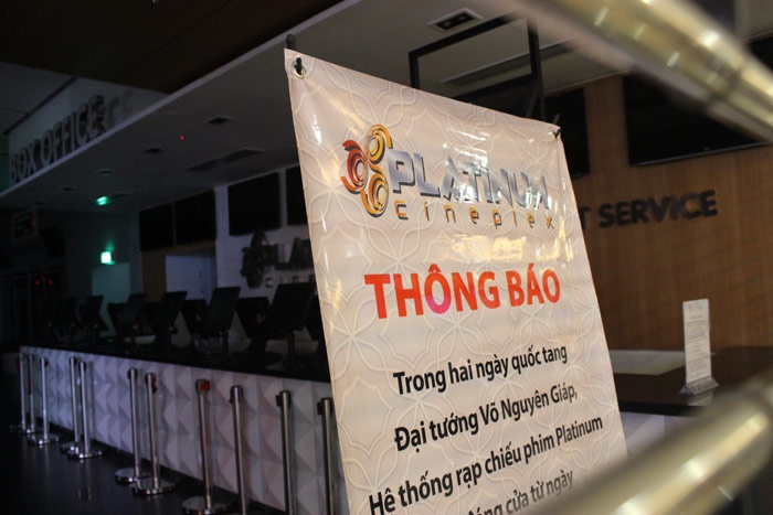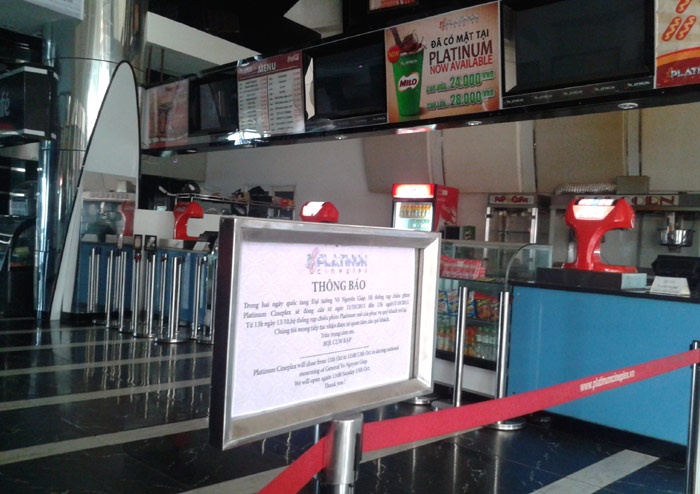 | Trung tâm chiếu phim The Garden đóng cửa và dán thông báo tạm nghỉ ngày quốc tang. |