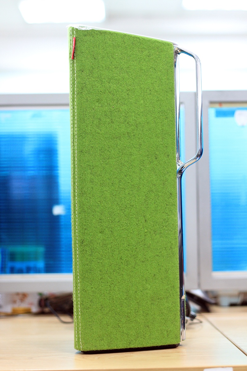 | Bề mặt loa được phủ một lớp vải lông. Các đường viền, góc cạnh được may khá chắc chắn. |