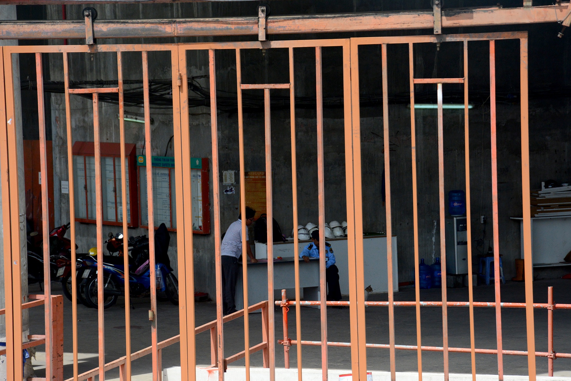 | Bên trong chỉ có bảo vệ và một số người của nhà thầu trông coi tài sản. |