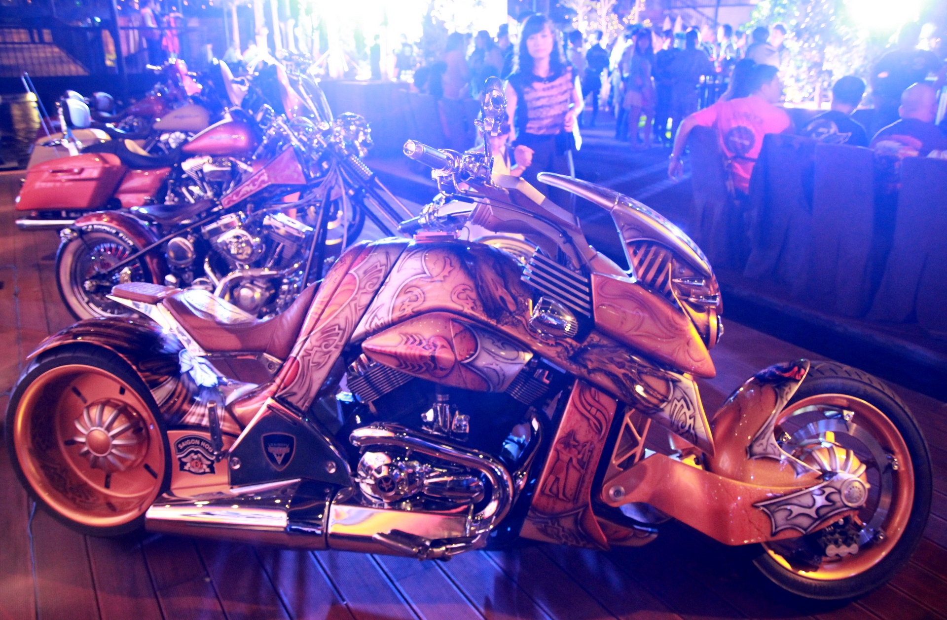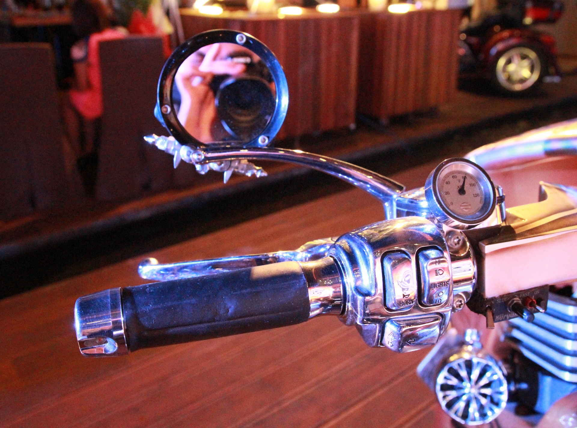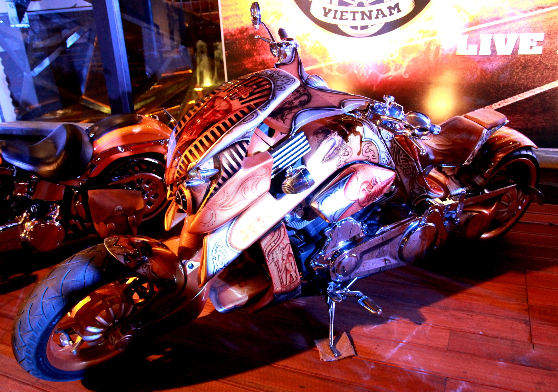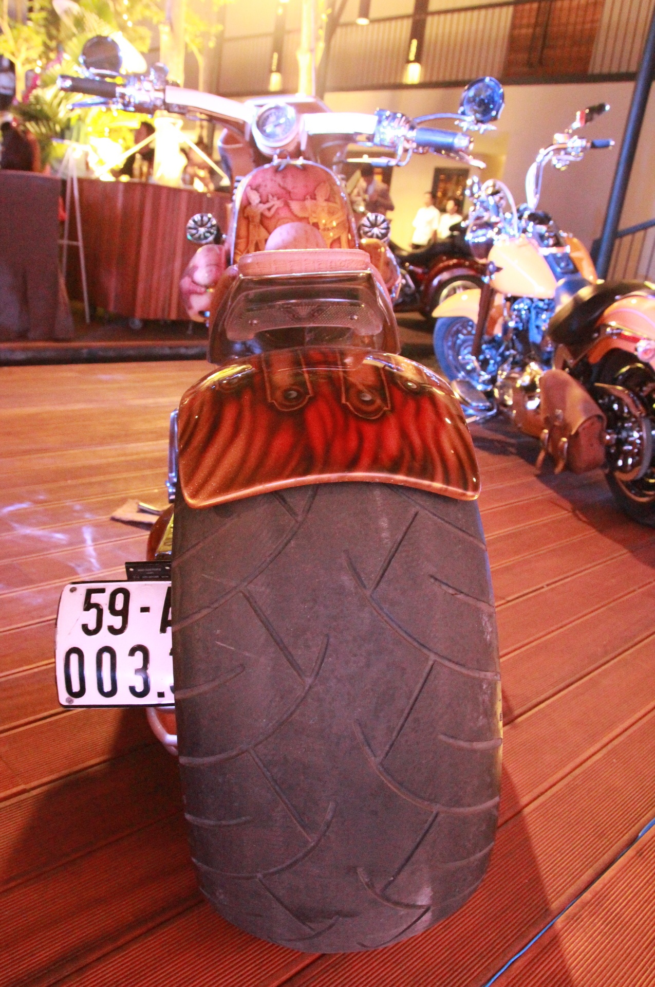| Bánh sau rộng bản cùng vè kiểu chopper. Xe thuộc sở hữu của một thành viên Saigon HOG, tiền thân của tổ chức Saigon Free Chapter đầu tiên tại châu Á. |