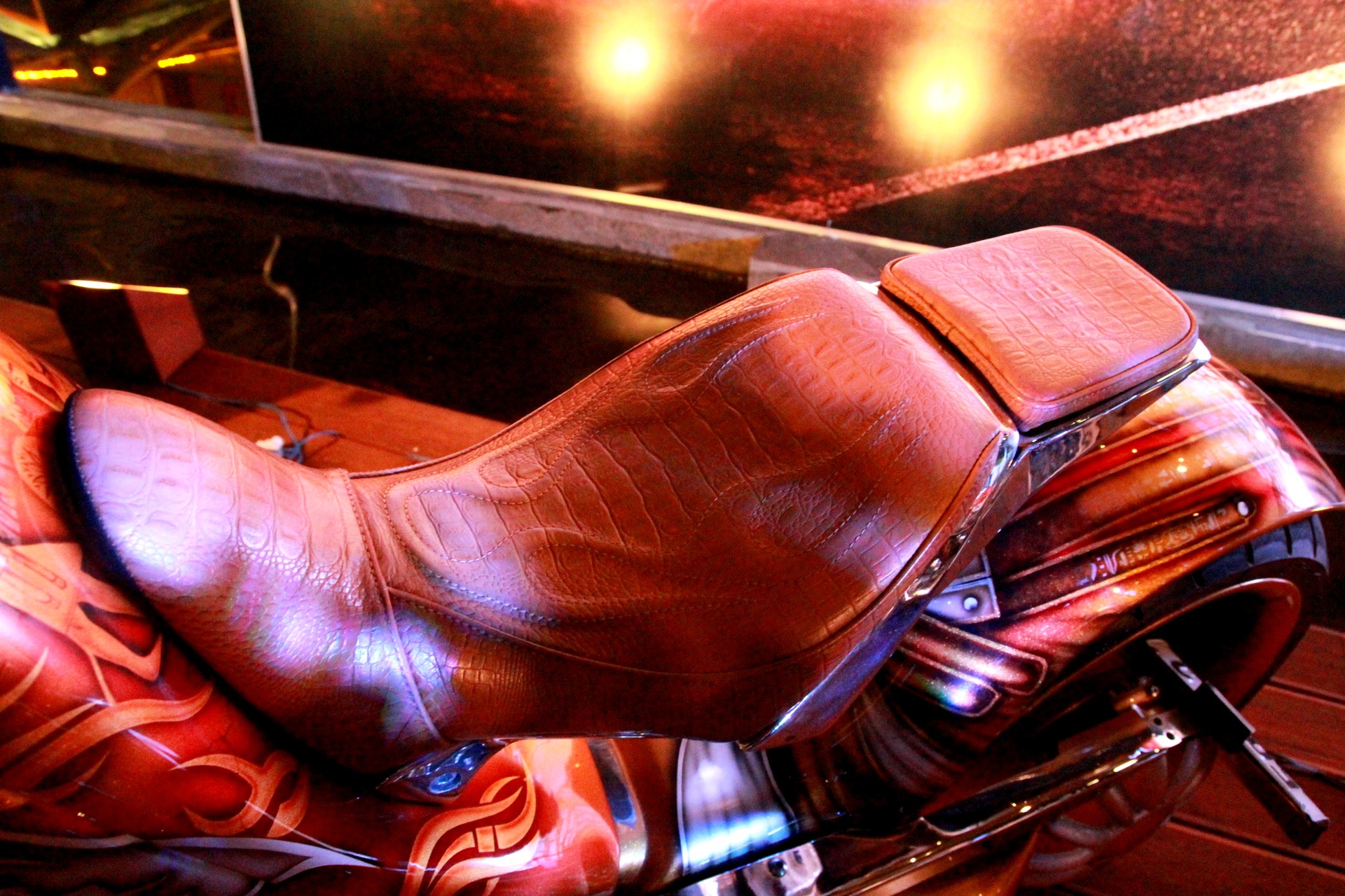 | Yên xe được bọc bằng da cá sấu thật với những đường chỉ khâu tay hết sức tinh xảo. |