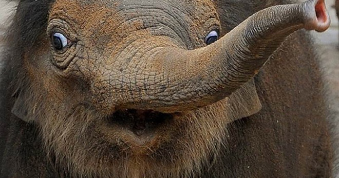 | Chú voi con mở mắt và vươn vòi. Ảnh:blog.asiantown.net |