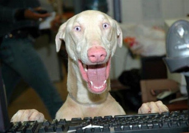 | Chú chó tỏ ra ngạc nhiên khi nó nhìn thấy điều thích thú trên màn hình máy tính. Ảnh:Amazing Creatures. |