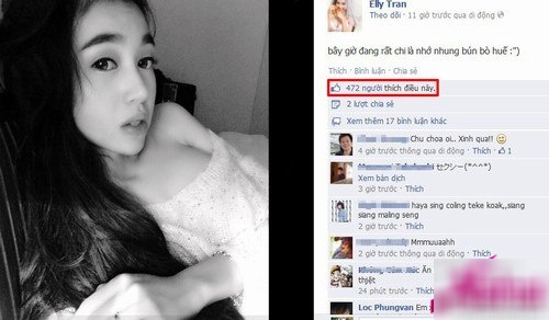 Elly Trần luôn nóng bỏng với những bức ảnh bikini, khoe vòng 1 "siêu khủng" đối lập với khuôn mặt baby của mình. Mỗi bức ảnh của cô xuất hiện lại có sức lan truyền rất nhanh với tốc độ chóng mặt. Nhận được sự quan tâm của nhiều người, cô luôn cập nhật những thông tin và hình ảnh mới nhất của mình trên trang cá nhân.