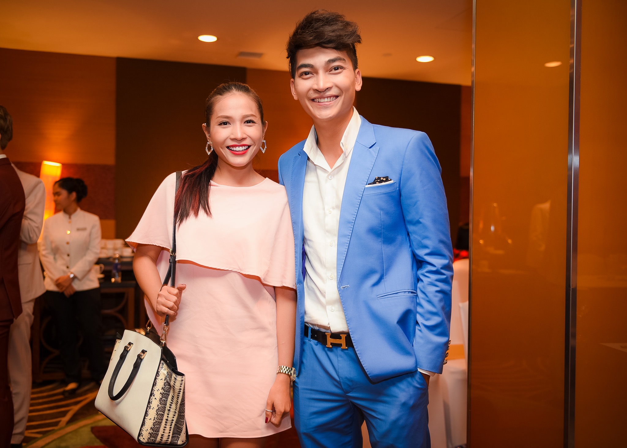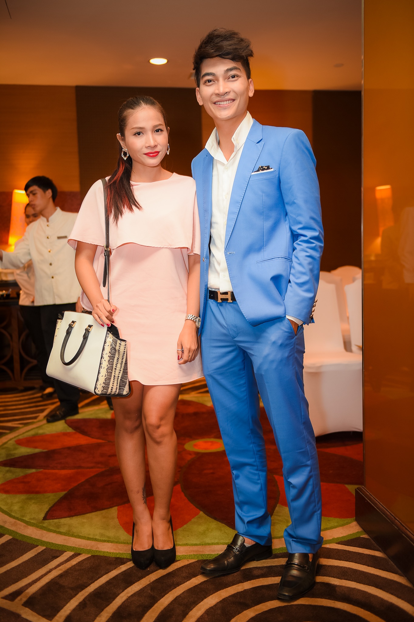 | Khương Ngọc tình cảm bên người yêu - diễn viên Khả Như. Anh từ chối mọi câu hỏi liên quan đến tình yêu. |