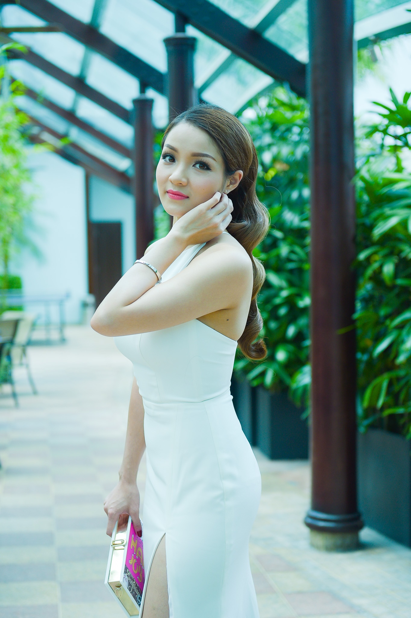 | Thủy Top diện đầm trắng thanh lịch. Cô dự định sắp tới sẽ ra mắt sản phẩm âm nhạc mới. |