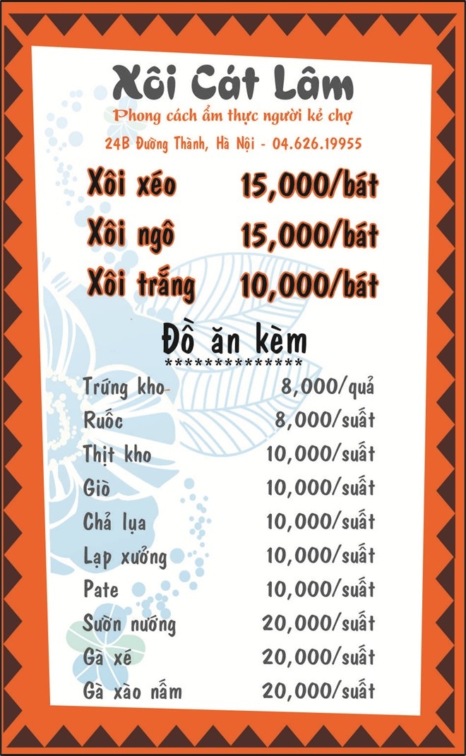 | - Một suất xôi xéo đối với những đơn hàng từ 3 suất xôi (không kèm thức ăn) trở lên (giá 15.000 đồng/suất). |