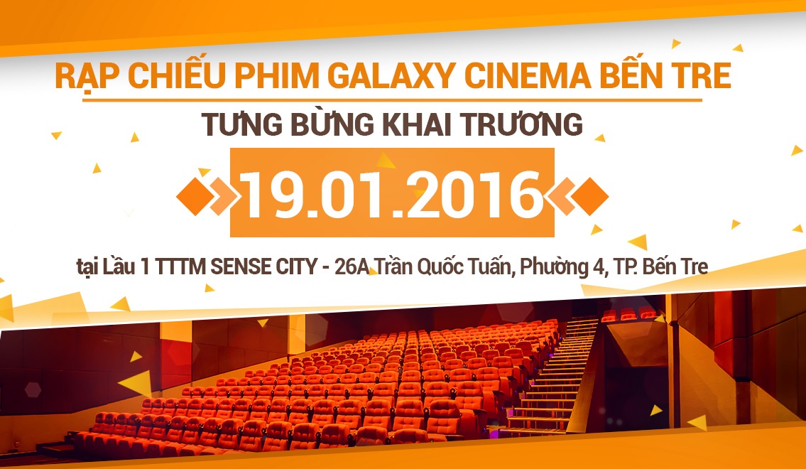 Nằm trong khu phức hợp mua sắm và giải trí Co.opmart - Sense City, rạp chiếu phim Galaxy Cinema Bến Tre sẽ là cụm rạp hiện đại đầu tiên xuất hiện trong khu vực trung tâm thành phố. Với cơ sở vật chất hiện đại, trang thiết bị phòng chiếu tối tân đạt tiêu chuẩn quốc tế, cụm rạp chiếu phim hứa hẹn là địa điểm giải trí, vui chơi được yêu thích của người dân “xứ dừa”, đặc biệt trong dịp Tết Bính Thân sắp tới.