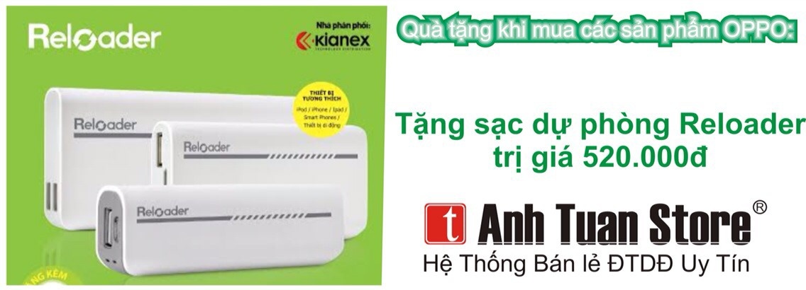 Khách mua bất kỳ các sản phẩm Oppo nào cũng sẽ được tặng một sạc dự phòng Reloader cao cấp trị giá 520.000 đồng.