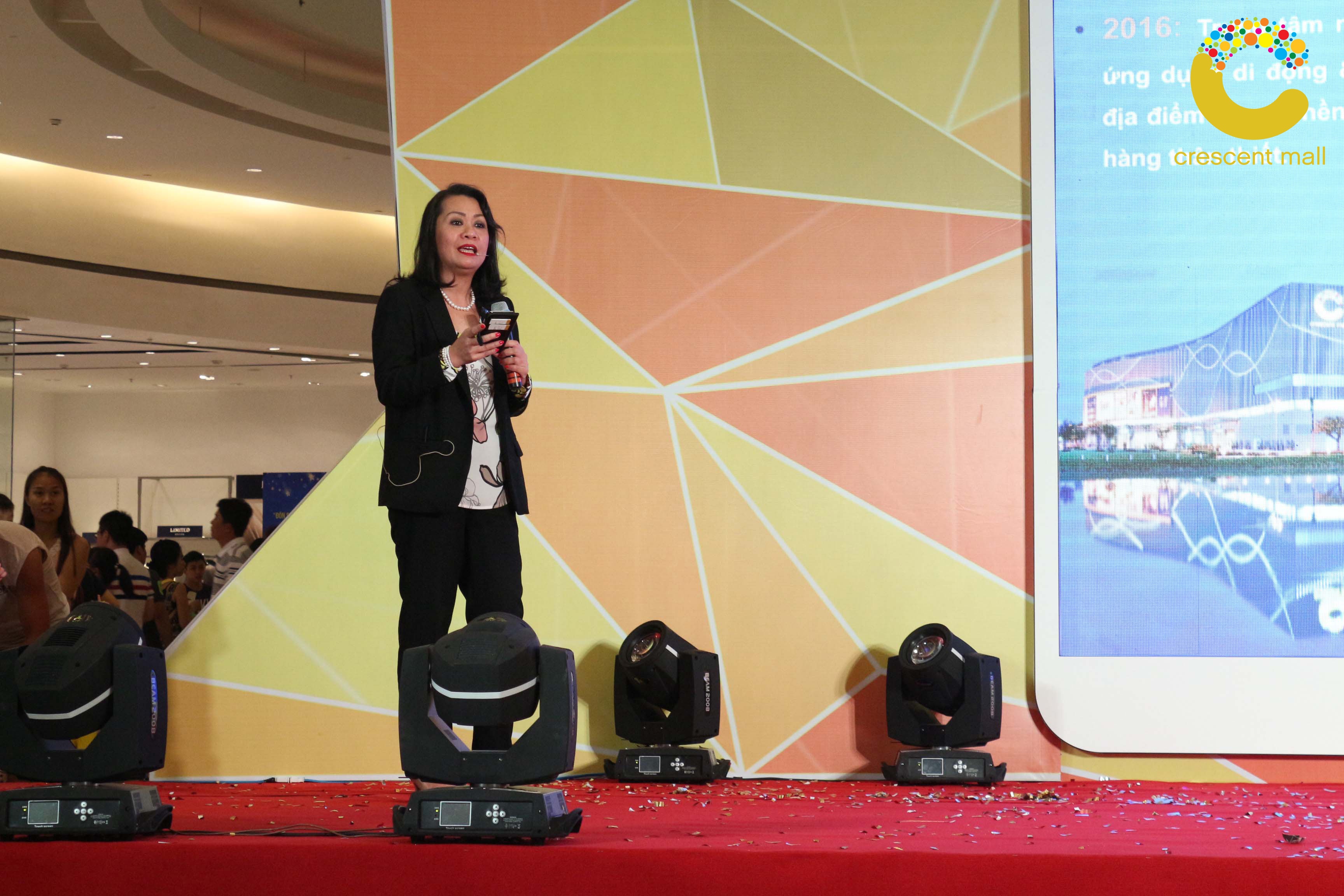 Đại diện của TTTM Crescent Mall trình bày với các nhà bán lẻ và khách hàng về những ưu điểm và tính năng nổi bật của ứng dụng di động Crescent Mall. |